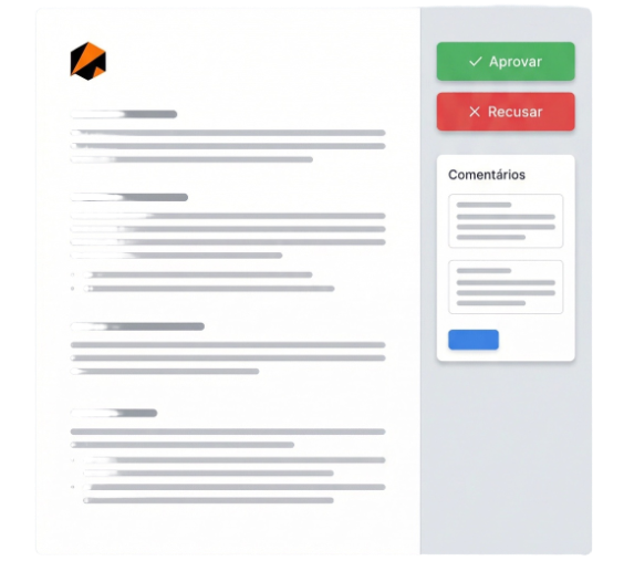 Cliente recebe link para visualizar, comentar e aprovar proposta online. Histórico completo de versões, mudanças e interações — tudo rastreável. Sem e-mails perdidos, sem confusão, aprovação rápida e profissional.